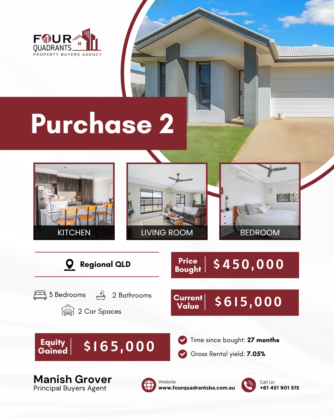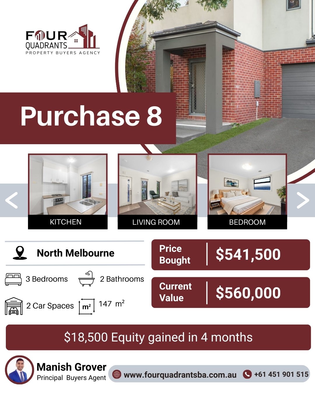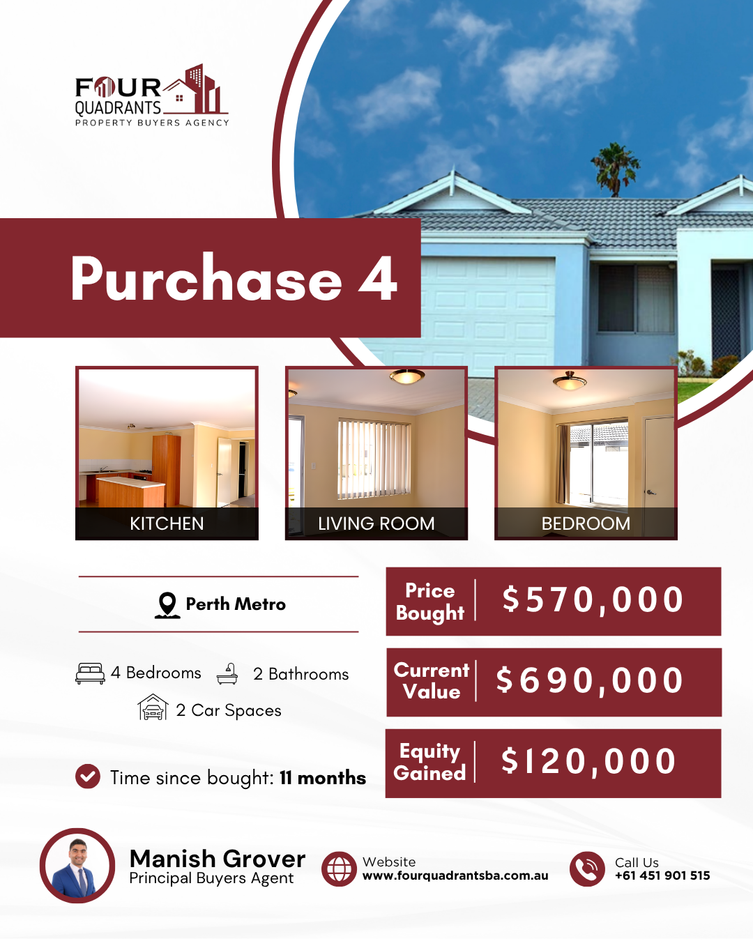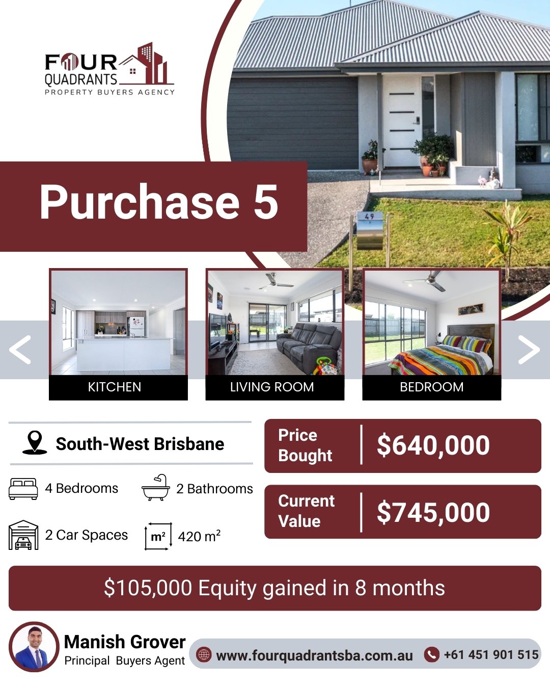 At Four Quadrants Property Buyers Agency, we take pride in helping clients secure high-performing investment properties across Australia. Each purchase reflects our data-driven approach, careful research, and commitment to building long-term wealth through smart property decisions.