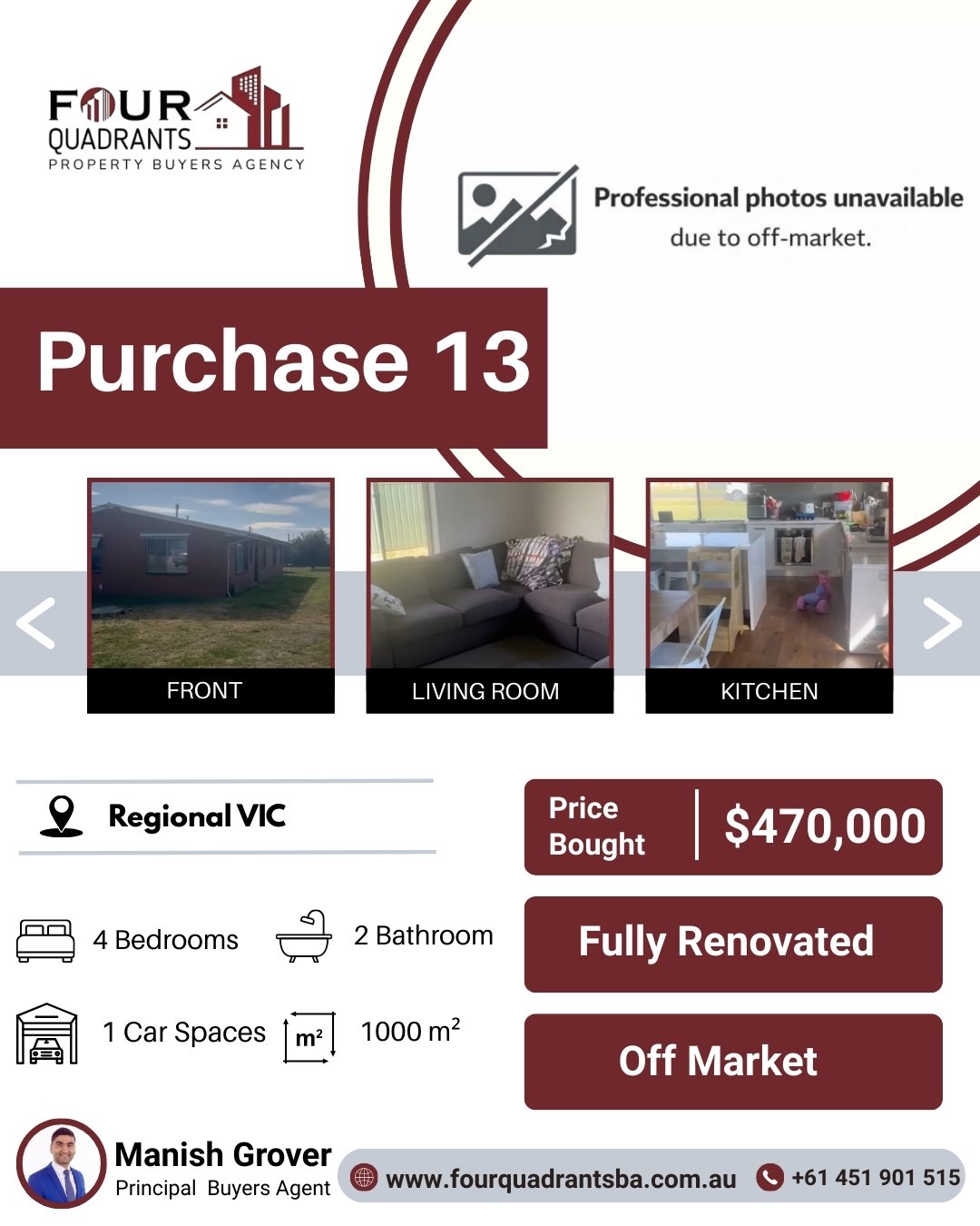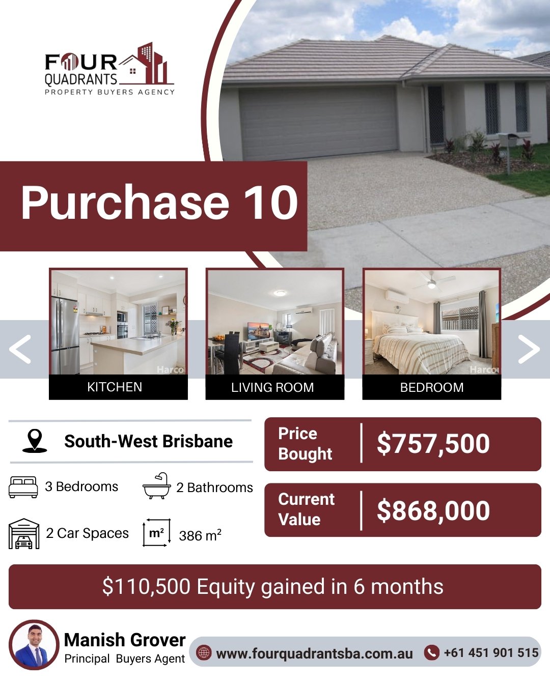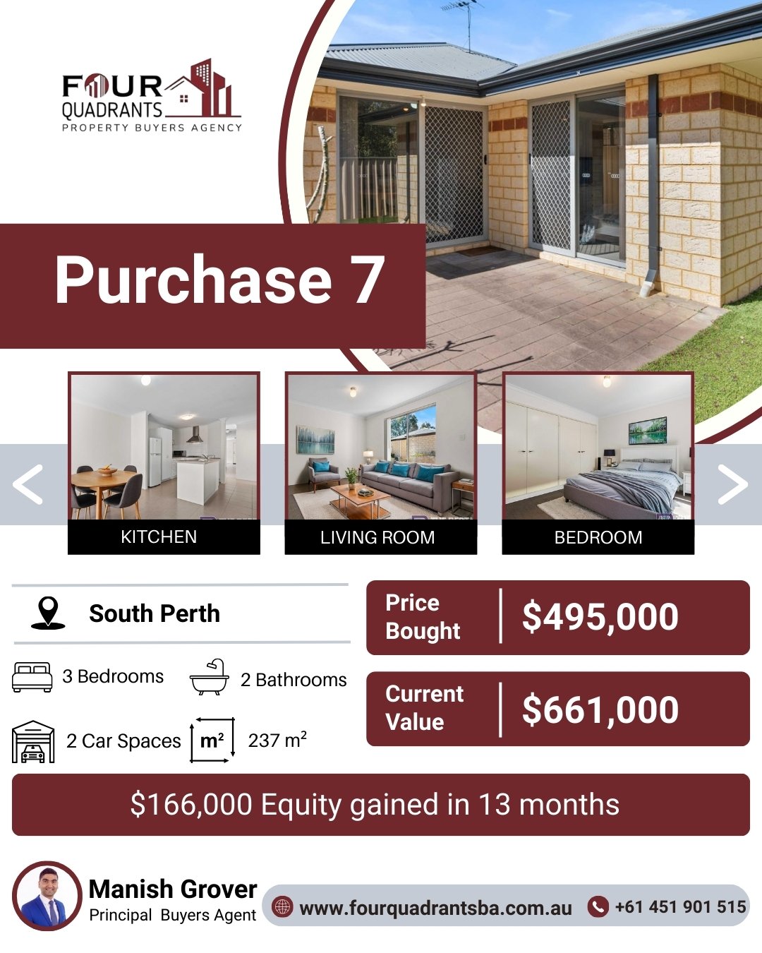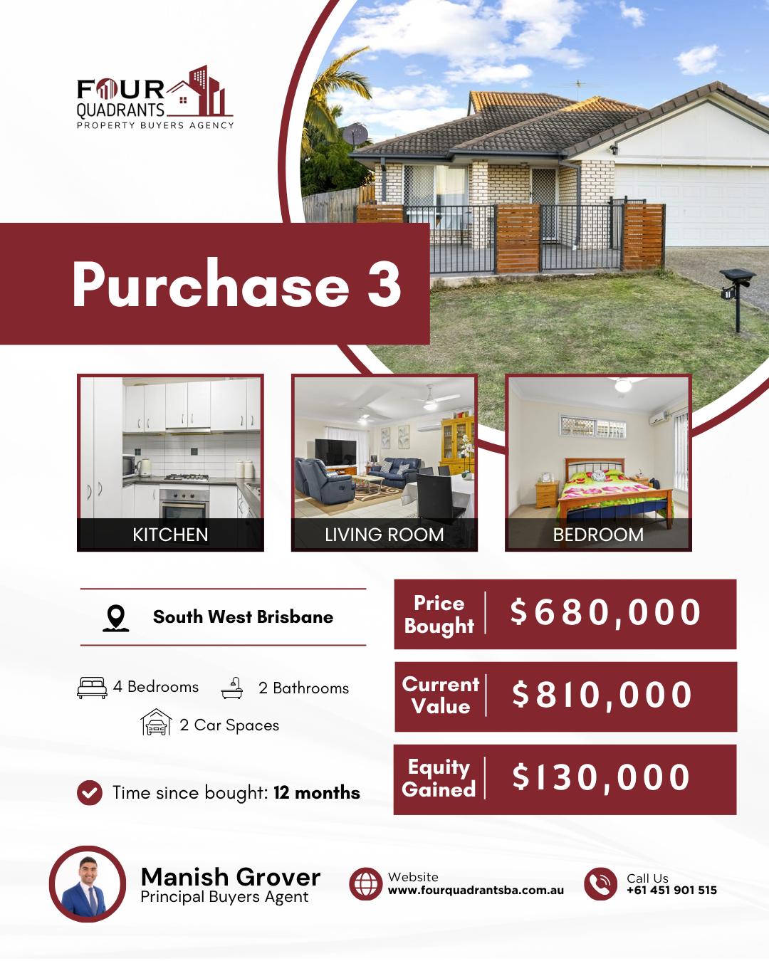 At Four Quadrants Property Buyers Agency, we take pride in helping clients secure high-performing investment properties across Australia. Each purchase reflects our data-driven approach, careful research, and commitment to building long-term wealth through smart property decisions.